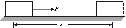 | Gambar 1. Sebuah balok yang berpindah sejauh lantaran gaya mempunyai perjuangan W=Fs. |